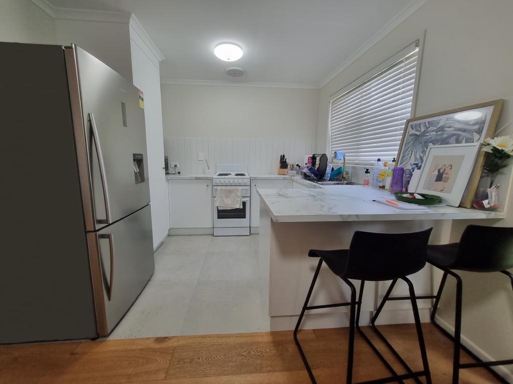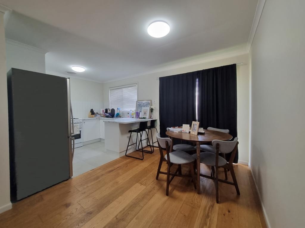 Open plan kitchen, lounge/dining with ceiling fan and a/c.