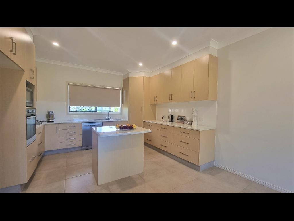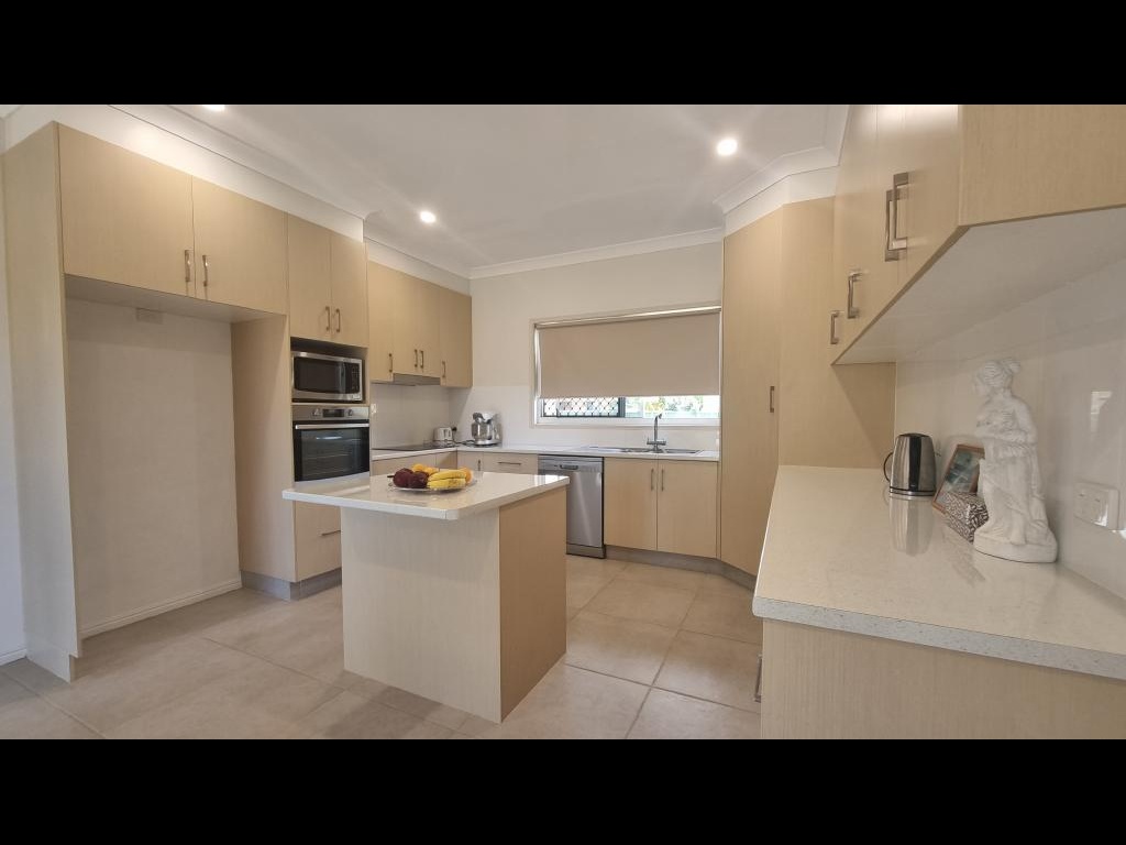 Large Kitchen with dishwasher, electric cooking appliances and plenty on bench and cupboard space.