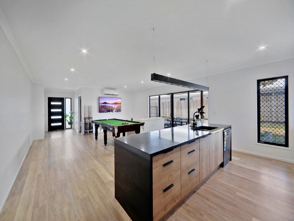 Open plan and airconditioned living, dining and kitchen.